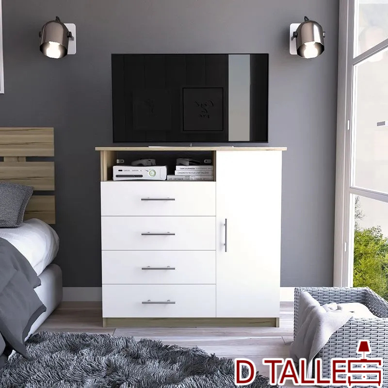 Una cómoda de melamina es un tipo de mueble diseñado para almacenar ropa u otros objetos personales, fabricado principalmente con tableros de melamina. La melamina es un material derivado de la combinación de partículas de madera prensada y cubierto con una capa protectora de resina, lo que lo hace resistente a rayones, humedad y fácil de limpiar.